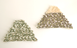 立体的な織り地を作ることができる技法「ノッティング」。動画では、トルコ結びという方法を使用し、手織りキット「タイル柄のノッティングチェアマット パステル」で織り方を説明しています。