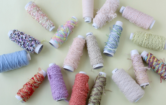 高さ11㎝ほど、手のひらサイズのミニコーン(紙管)に巻いた飾り糸のパックです。