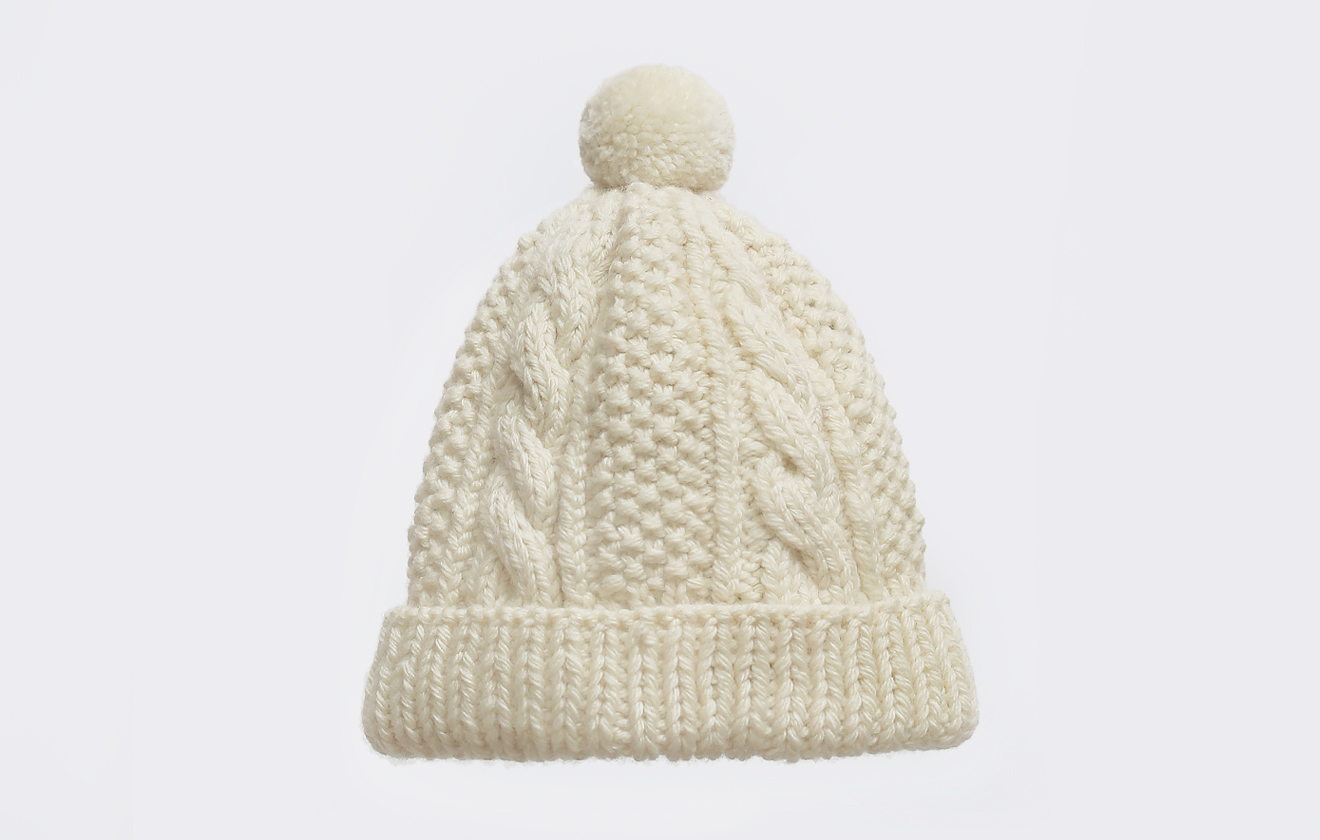 スムースウールのアランニットキャップ