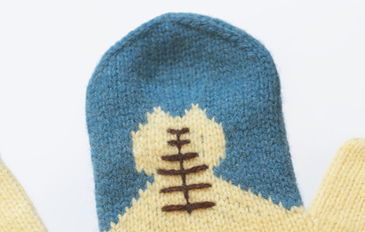 ミトンは3本取りで編むことでしっかりと厚みもあり、寒い手元をあたたかくに包んでくれますよ。