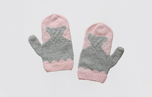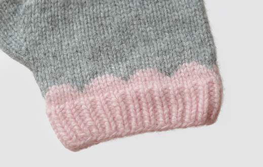 ふんわり柔らかなウールカシミヤの糸で編むミトンのキットです。