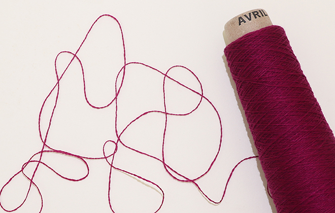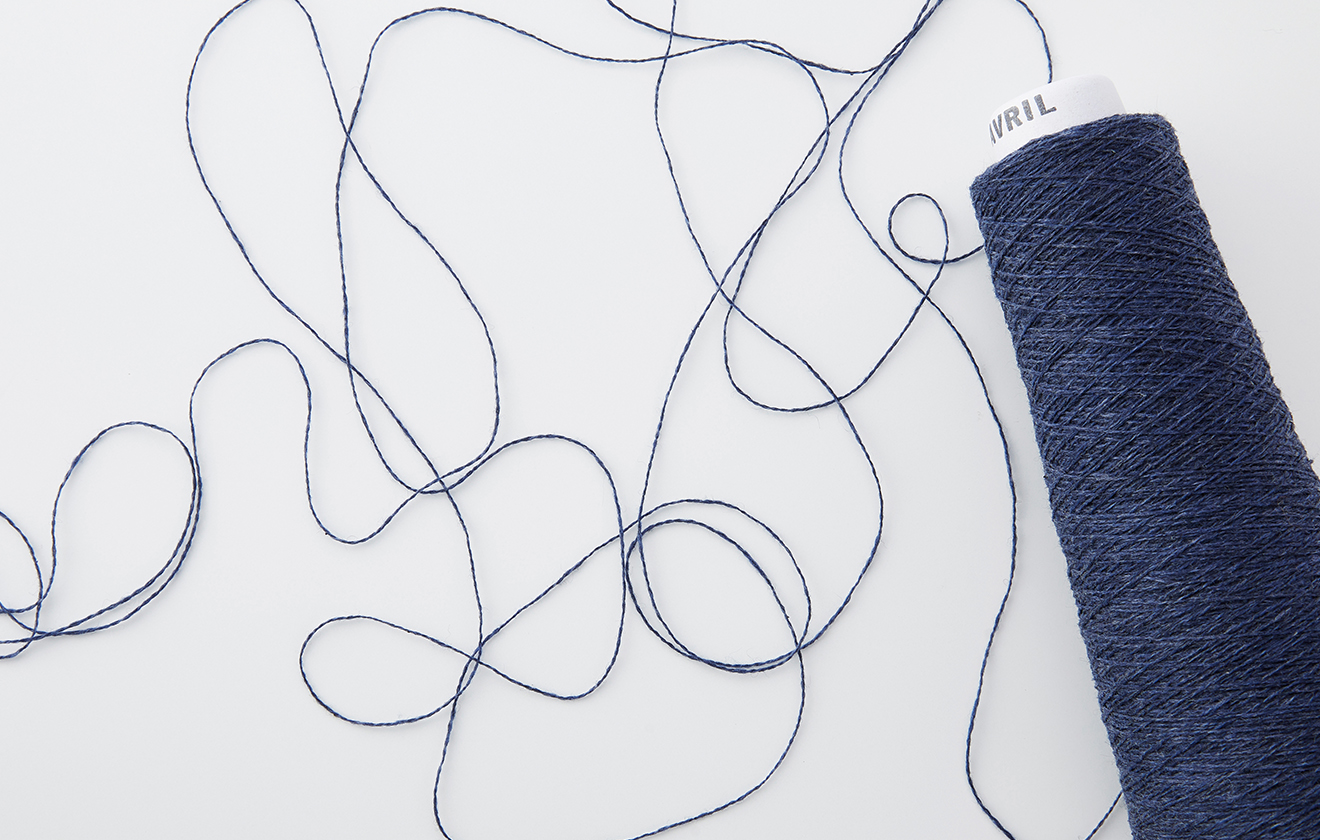 ハリ感を出したい場合は、「ピュアラム」、「メリノ」、「ラム85」、「アンゴラネップ」など、細番手のウール糸をミックスして編むのがおすすめ。