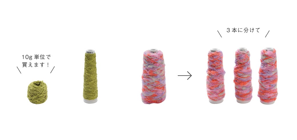 You will have a look kits, knitting and weaving tools even if not only of AVRIL yarns there. We sell almost yarns per 10 grams weight.